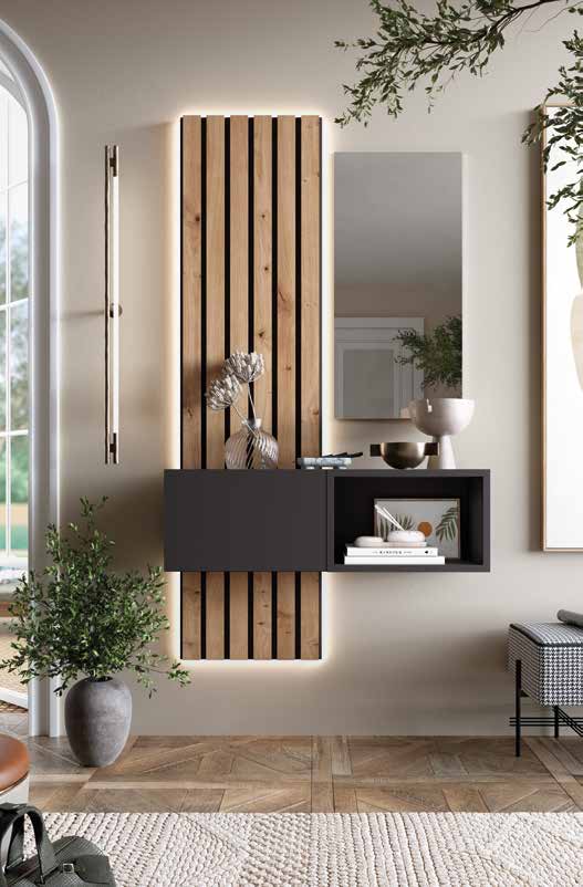 El recibidor 202 mide 100 cm de ancho y estรก acabado en artisan y รฉbano. Incluye mรณdulos Panel TV 47.5×119 cm, Mรณdulo cubo 50x32x28 cm, Panel TV 47.5×32 cm, Mรณdulo puerta 50x32x30 cm, Espejo rectangular 40×90 cm. Su diseรฑo combina funcionalidad y estilo para tu entrada. Fabricado con materiales de alta calidad.
