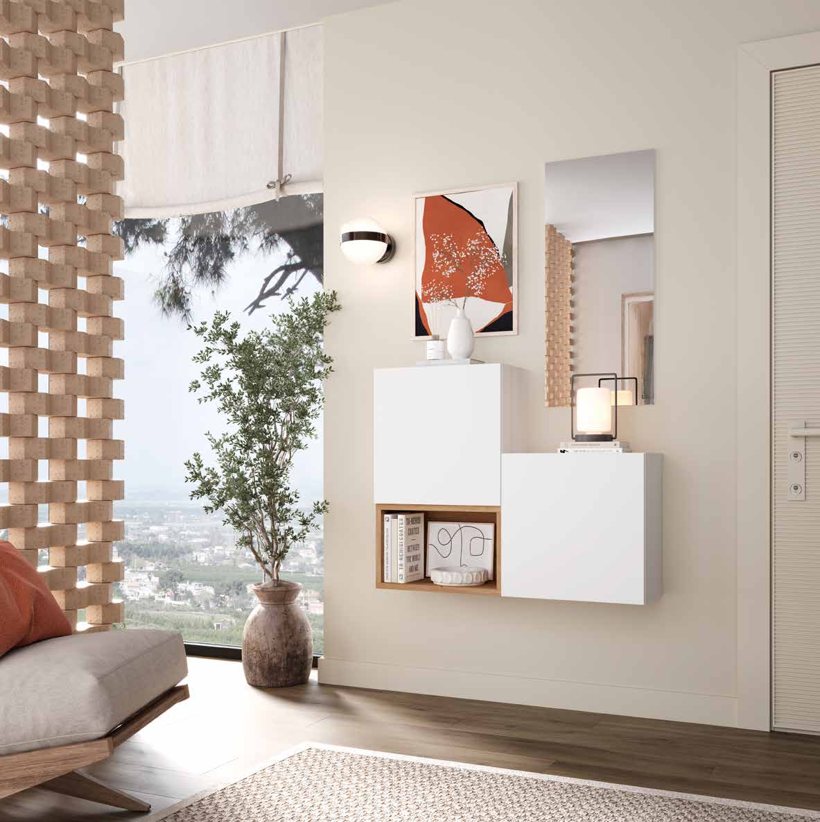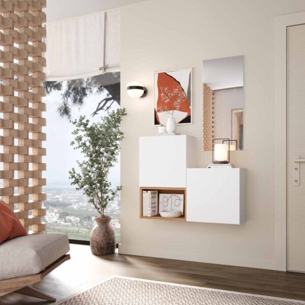 El recibidor 211 mide 100 cm de ancho y estรก acabado en artisan y blanco. Incluye mรณdulos Mรณdulo puerta 50x50x30 cm, Mรณdulo cubo 50x32x28 cm, Espejo rectangular 40×90 cm. Su diseรฑo combina funcionalidad y estilo para tu entrada. Fabricado con materiales de alta calidad.