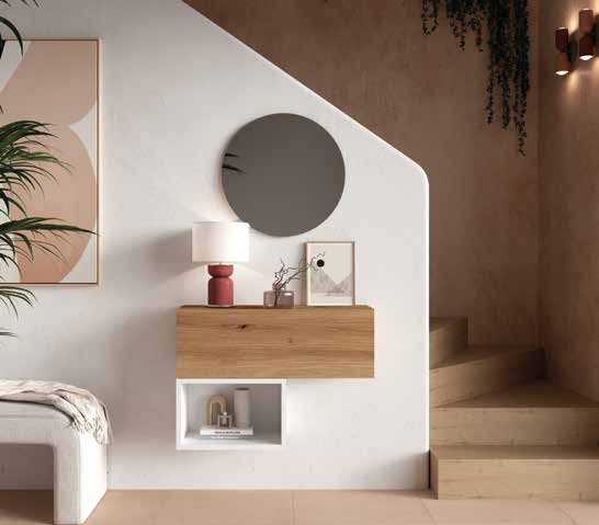 El recibidor 217 mide 90 cm de ancho y estรก acabado en artisan y blanco. Incluye mรณdulos Mรณdulo cubo 50x32x28 cm, Espejo redondo diรกmetro 60 cm, Mรณdulo abatible 90x32x30 cm. Su diseรฑo combina funcionalidad y estilo para tu entrada. Fabricado con materiales de alta calidad.