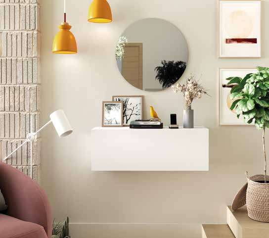 El recibidor 223 mide 90 cm de ancho y estรก acabado en blanco. Incluye mรณdulos Espejo redondo diรกmetro 60 cm, Mรณdulo abatible 90x32x30 cm. Su diseรฑo combina funcionalidad y estilo para tu entrada. Fabricado con materiales de alta calidad.