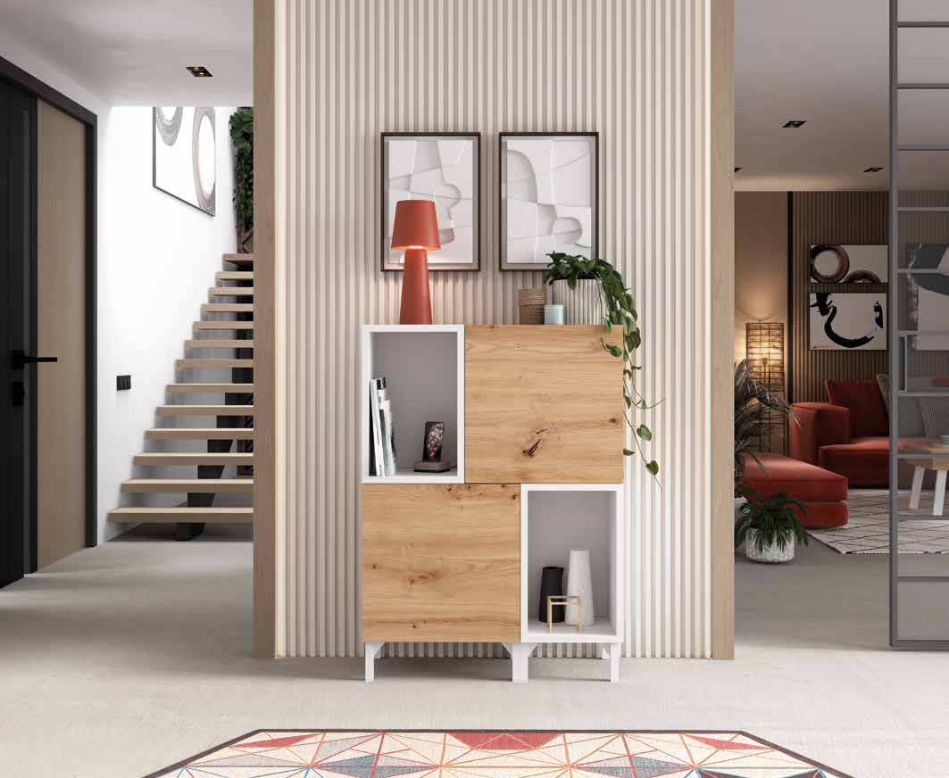 El recibidor 232 mide 82 cm de ancho y estรก acabado en artisan y blanco. Incluye mรณdulos Mรณdulo puerta 50x50x30 cm, Mรณdulo cubo 50x32x28 cm, Juego de 4 patas 12 cm. Su diseรฑo combina funcionalidad y estilo para tu entrada. Fabricado con materiales de alta calidad.