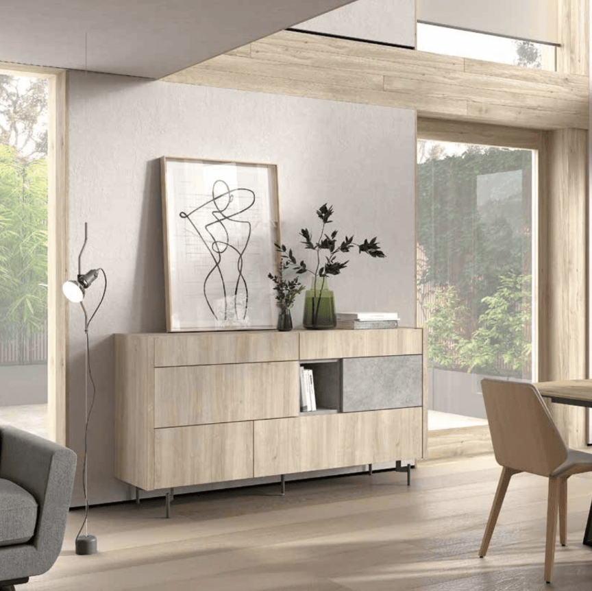 A. Aparador 2 cajones + 4 puertas + hueco izq. pie metálico N1288 180 96 45,2 830