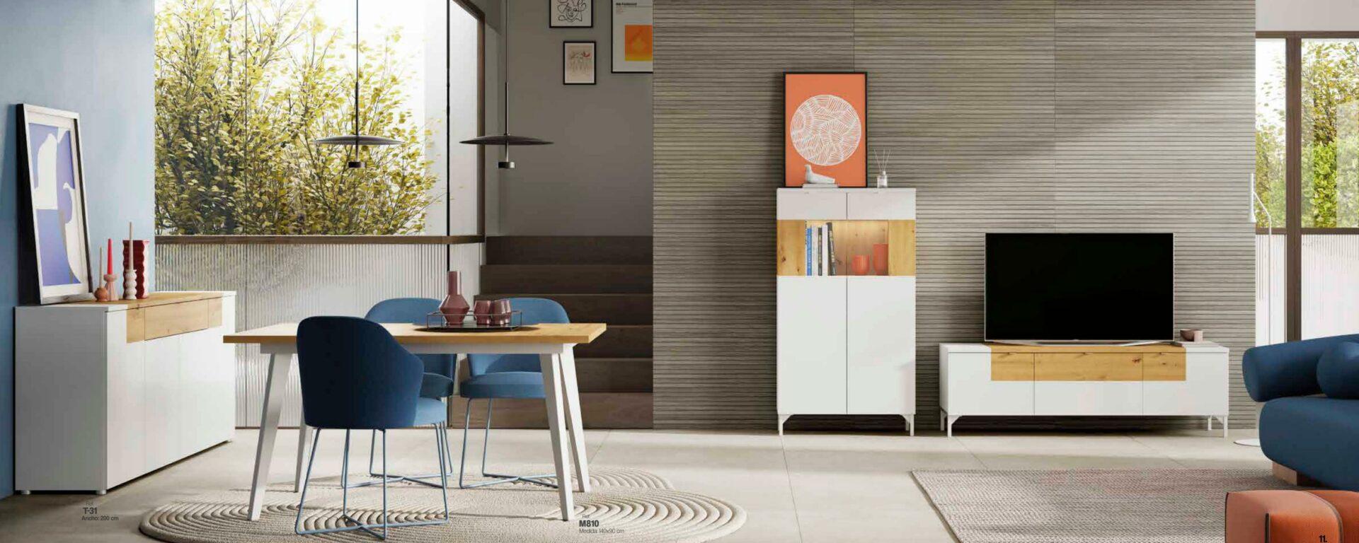 Salón TEMPO 905. Ancho aproximado: 240 cm. Acabado/colores: Blanco lacado MATE / Artisán / Ancho: 240 cm. Categoría: Salones.
